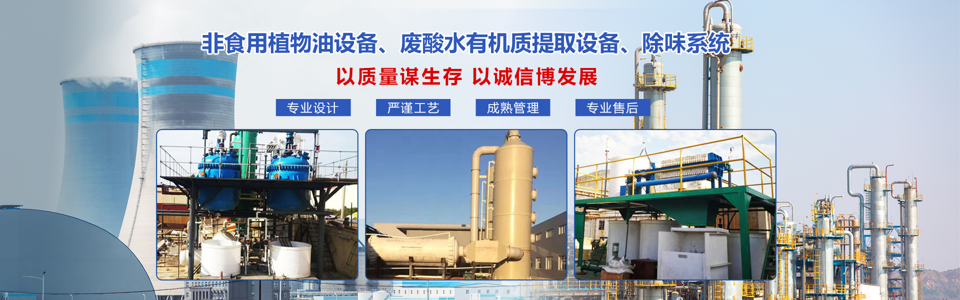 海南盛陽(yáng)世紀(jì)機(jī)械設(shè)備有限公司是一家專門(mén)從事非食用植物油生產(chǎn)設(shè)備、廢酸水有機(jī)質(zhì)提取設(shè)備、除味系統(tǒng)、水處理工藝設(shè)備的設(shè)計(jì)、研發(fā)、制造、銷售、租賃以及技術(shù)培訓(xùn)、自動(dòng)化設(shè)計(jì)等一站式服務(wù)的專業(yè)公司